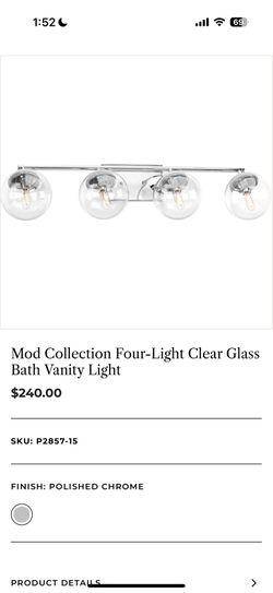 Progress Lighting Mod Collection Four-Light Clear Glass Bath Vanity Light$20Vancouver, WA