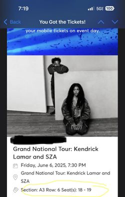 1 Kendrick Lamar Concert Ticket 6/6 Ground Level Seats $400Calumet Park, IL