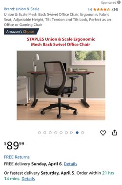 Union & Scale Mesh Back Swivel Office Chair, Ergonomic Fabric Seat, Adjustable Height, Tilt Tension and Tilt Lock, Perfect as an Office or Gaming Chai$50Hesperia, CA