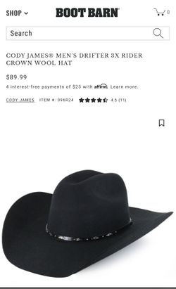 CODY JAMES MEN'S DRIFTER 3X RIDER CROWN WOOL HAT$75Hesperia, CA