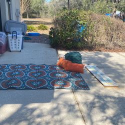 outdoor rug, ottoman, throw pillows, and beach sign set$60Spring Hill, FL
