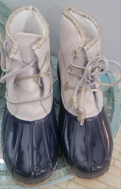 Jack Rogers Duck Boots Blue Navy/white Ivory Gold Accents Size 9 Women $40Raleigh, NC