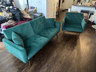 Velvet Emerald green With Gold Legs And Base Love Seat Futon $350Irvine, CA
