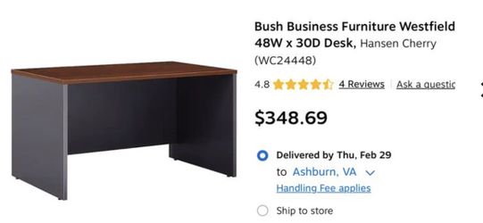 Bush Business Furniture Westfield 48W x 30D Desk$249Washington, DC