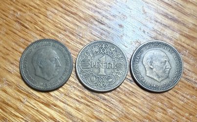 LOT 3 1944, 1947, 1963 SPAIN UNA ONE PESETA COINS-mixed dates, higher grades$14Auburn, WA