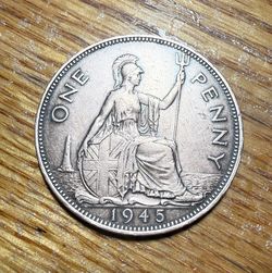 1945 VICTORY PENNY-ONE PENNY COIN-1d BRITISH BRONZE COIN-KING GEORGE VI$10Auburn, WA