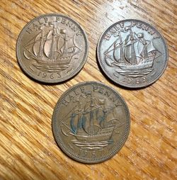 VF VERY FINE 1957, 1959 & 1963 GREAT BRITAIN ENGLISH 1/2 HALF PENNY CENT LOT$11Auburn, WA