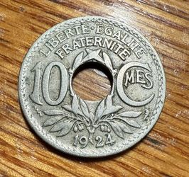 1924 FRANCE LIBERTE 10 CENTIMES RF COIN USED - Jewelry Grade - Coin With A Hole$10Auburn, WA
