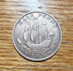 1943 HALFPENNY-HALF PENNY COIN - 1/2d BRONZE COIN-KING GEORGE VI-THE GOLDEN HIND$15Auburn, WA