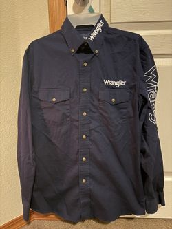 Vintage Western Wrangler® Embroidered Logo S Navy Long Sleeve Button Down Shirt $25Auburn, WA