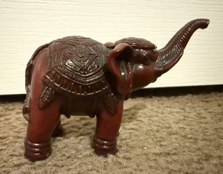 Elephant Red Resin Figurine in Festive Parade Costume Trunk Up For Good Luck Vtg$12Auburn, WA