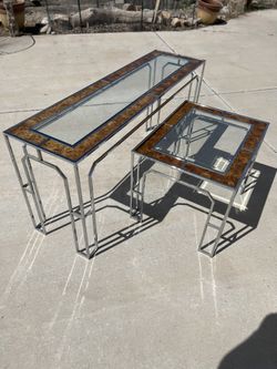 Milo Baughman Pair of MCM Chrome & Burl Maple End & Console Tables$1,200Bernalillo, NM