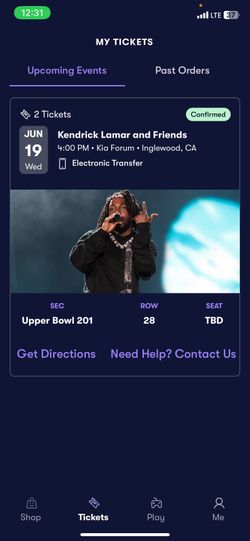 2 Tickets To Kendrick Lamar Show Tomorrow! $250Temple City, CA
