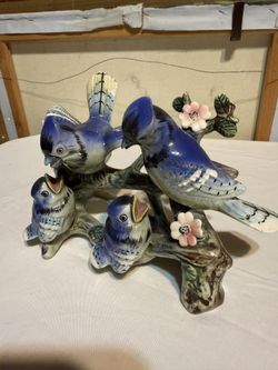 Vintage Napco Blue Jay Bird Family Figurine in Tree Feeding Baby Chic Open Wings$40Riverside, CA