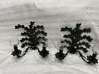 Two vintage green cast iron leaf vines wall sconces candle holders$100Lehigh Acres, FL