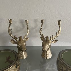 Set Of 2 Handcrafted 13X7.5” Brass Look Stag Deer Head Ornate Heavy Candelabra $89Queen Creek, AZ