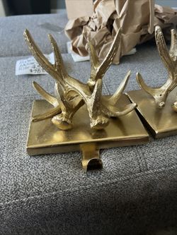 Set Of 2 Gold Tone Heavy Metal(Brass?) Target Antler Stocking Holder(6.25X5X4)$69Queen Creek, AZ