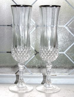 VINTAGE LONGCHAMP CRISTAL D'ARQUES-DURAND CHAMPAGNE FLUTES WITH SILVER RIMS$100Arlington, TX