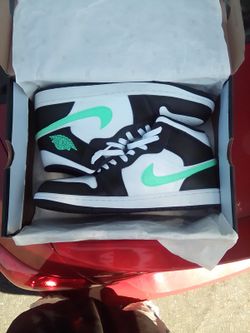 Air Jordan 1 Mids White/Green/Glow-Black Size 10.5$65San Diego, CA