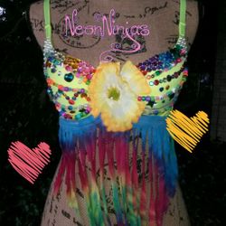 New Hawaiian Sunrise handmade rave bra 36C$25San Antonio, TX