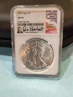 2020 silver Eagle 1 dollar MS 70 graded by NGC. With retired lead Sculpture, Don Evenheart.$200Los Angeles, CA