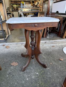 Antique Victorian Eastlake Marble Topped Walnut and Burl Side Table$175Pittsburg, CA