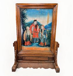 Antique Chinese 19th Century Reverse Painted Glass Table Screen Fu Lu Shou Qing$300Concord, CA