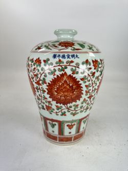 Antique Chinese Ming Marked Iron Red And Green Glazed Meiping Vase Qing - 1900s$300Concord, CA