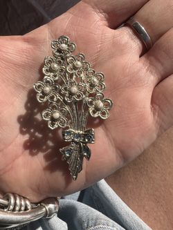 Estate pin brooch 50’s silver tone Pearl & blue zircon pin brooch $12Carlsbad, CA