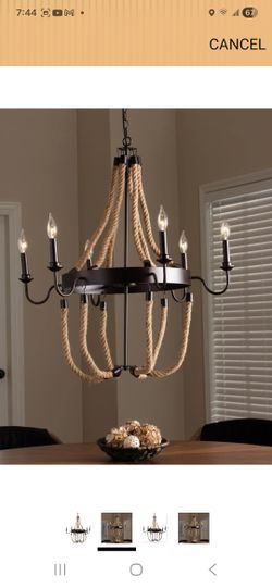 Baxton Studio Cassia Vintage Industrial Antique Style Hemp and Dark Bronze Metal 6 Light Chandelier$50Sacramento, CA