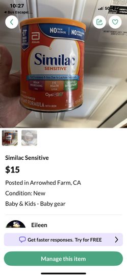 Baby Formula Similac Sensitive$13Arrowhed Farm, CA