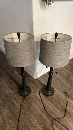 2 dark brown metal lamps with gray textured lampshade$50Byron, CA