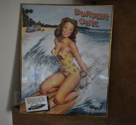 Vintage Tiki Art "Surfer Girl" Duke's Dolls Surf Club Hawaii 30" x 24" Framed$35Spring Valley, CA