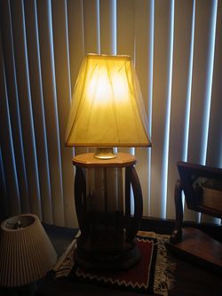 Vintage MCM wood and Etched Glass "Cage" Lamp$40Santa Ana, CA
