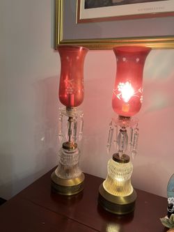 Cranberry Etched Glass Hurricane Electric Lamps 2’$25Raleigh, NC