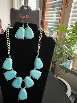 PAPARAZZI "THE GERALDINE" ROUNDED TRIANGLE TURQUOISE STONE ZI COLLECTION NECKLACE & EARRING SET$10Garner, NC