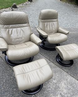 Beautiful Set of 2 Leather Ekornes Stressless Chairs & Ottomans 🇳🇴$2,250Puyallup, WA