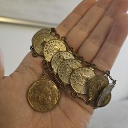 Cinco Centavos Coin Bracelet Vintage 1960s Mexican$100Los Angeles, CA