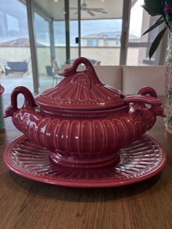 Porta Portugal Vtg Wine Pink Red Colored Swan Tureen 4 Pc. Covered$35Corona, CA