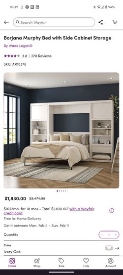 FULL (NOT QUEEN) size Murphy Bed With Side Cabinet Storage $1,000Lakewood, CA