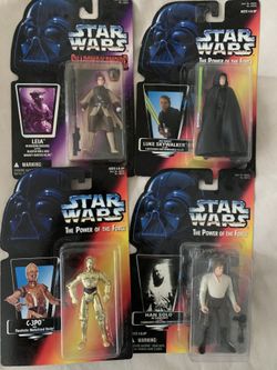 Star Wars 5 action figures Darth Vader Han Solo Princess Leia C-3PO POTF 1995 New on card. Great condition. Kenner.$50Los Angeles, CA