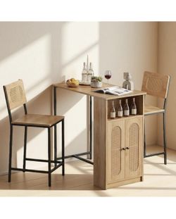 Tangkula 3-Piece Counter Height Bar Table Set, Kitchen Table with 2 Bar Stools & Storage Shelves, Breakfast Table Set with Backrests & Footrests, Rect$169Rosemead, CA