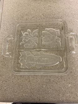 ~~**~~BEAUTIFUL ETCHED 3 SECTION DISH WITH HANDLES**UNIQUE~~**~~ MUST SEE TO APPRECIATE THE DETAILED CARVING VERY UNUSUAL- 7 BY 9 1/2$31San Francisco, CA