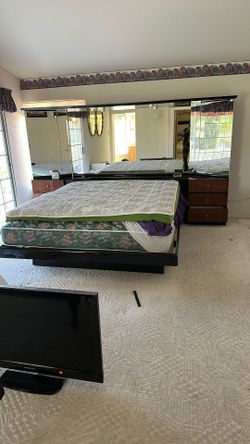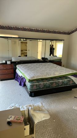 King Size Bed With Mattress Includes 3 Drawer Night Stand and mirror backboard$1Boulder City, NV