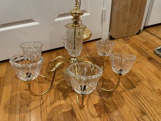 VINTAGE GOLD CRYSTAL MID CENTURY BRASS CHANDELIER LIGHT FIXTURE CEILING MODERN$100Rockaway, NJ