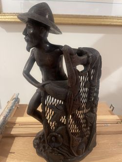 Balinese Intricate Wood Carved Figurine Statue Fisherman With Net Indonesian 16”$85Dover, NJ