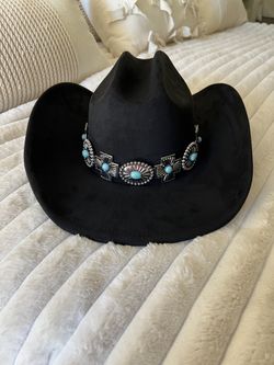Beautiful Black Suede Cowboy Hat with Silver and Turquoise Belt - New with Tags$50Indio, CA