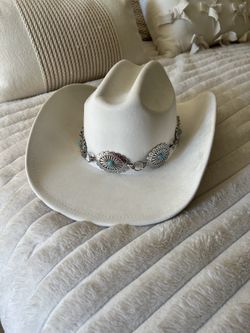 Stunning White Cream Cowboy Hat With Silver And Turquoise Concho Belt$50La Quinta, CA
