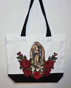 Virgen de Guadalupe Image with 3D embroidered flowers canvas Tote, bag, Purse, shopping bag.$38Fontana, CA