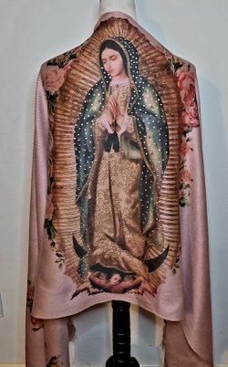 Our Lady Of Guadalupe/ virgen de Guadalupe with RHINESTONES in the image Rebozo dusty Rose shawl Pashmina wrap made in Guanajuato México$45Fontana, CA